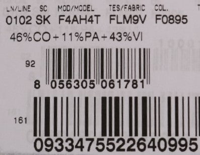 البطانة : 86% حرير، 4% إيلاستان، 6% قطن، 2% نايلون