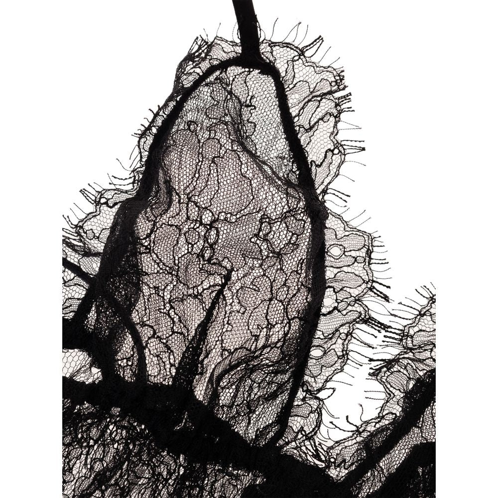 الجزء العلوي من مثلث من الدانتيل بالكامل، وحبل مطاطي وأشرطة كتف، وواجهة مفتوحة.