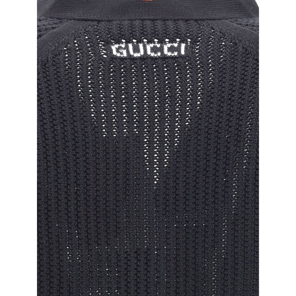 Cotton cardigan from Gucci features a V-neck front and front button closure for a classic, refined style. Raglan sleeves ensure comfort and freedom of movement, while the knit weave lends a touch of elegant texture. Ribbed cuffs and hem complete the garment, ensuring a snug, curated fit. Perfect for a versatile and sophisticated look.